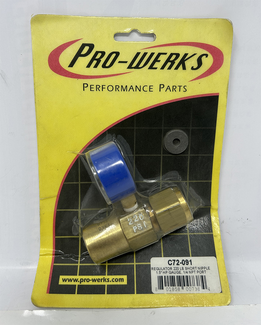 | Regulator | Pro-Werks | 0-220lb | Short Nipple 1.50in Diam Gauge 1/4 NPT Port p/n 72-091 | 1ea | NEW! | $30 | |