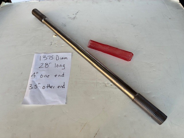 | ![]() SOLID | 1.375 ID 32 Spline | Ideal for Funny Car, Altered, etc.. 28in Long 4.00in Available both ends | 1ea | Good | $150 | |
