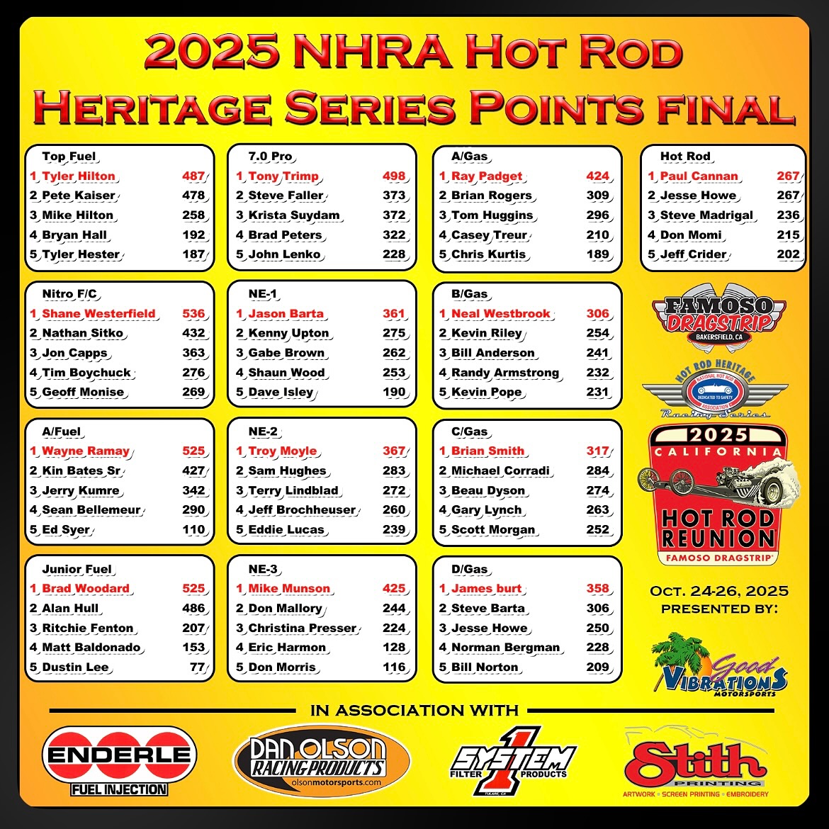 | Official NHRA Press Release GOOD VIBRATIONS MOTORSPORTS NAMED ASSOCIATE SPONSOR FOR HOT ROD REUNION EVENTS IN 2016 GLENDORA, CALIF. – The NHRA announced that Good Vibrations Motorsports, an industry leader in aftermarket horsepower accessories, has been named an associate sponsor the 2016 NHRA Hot Rod Reunion events. The company, based in Whittier, Calif., will be heavily involved in both the 14th annual Holley National Hot Rod Reunion® presented by AAA Insurance in Bowling Green, Ky., as well as the 25th Annual California Hot Rod Reunion Presented by Automobile Club of Southern California in Bakersfield, Calif. At the 14th annual Holley National Hot Rod Reunion® presented by AAA Insurance June 16-18, Good Vibrations Motorsports will be featured in a large display inside the oval track in the manufacturer midway. The display will feature a full-size reaction time simulator that fans can see where they stack up as racers. For the race weekend they will add bonus money in many of the categories of racing taking part during the weekend. For the 25th Annual California Hot Rod Reunion Presented by Automobile Club of Southern California, Oct. 21-23, Good Vibrations will be heavily involved in many aspects of the silver anniversary of the wildly popular event. They will also sponsor the 7.0 category and again present racers in many of the classes with bonuses in the event. “The Hot Rod Reunion events provide our company a unique platform where we can showcase our products and services,” said Jim Maher, owner of Good Vibrations Motorsports. “Racers and fans are welcome to visit us where they’ll have the opportunity to check out new products, ask technical questions, enjoy savings on race-day specials and just bench race if they like. The social atmosphere is just as exciting and rewarding as the action on the strip.” Good Vibrations Motorsports specializes in superchargers for blown gas, alcohol & nitro engines. Their products will help you muscle a Funny Car down the track, skimming across the lake or cruising the boulevard, Good Vibrations has a blower for you. Supercharging is one the most consistent and reliable form of bolt-on power available and is actually very affordable. Good Vibrations is also your injection connection being the largest dealer in world of Enderle fuel injection hats, fuel pumps, drives and linkages. The Holley National Hot Rod Reunion presented by AAA Insurance is produced by the Wally Parks NHRA Motorsports Museum and benefits the facility located in Pomona, Calif. The Wally Parks NHRA Motorsports Museum is a 501c(3) non-profit institution and collects, preserves, exhibits and interprets the vehicles, stories, and artifacts that represent the influence of, automotive speed and style in all its forms. |